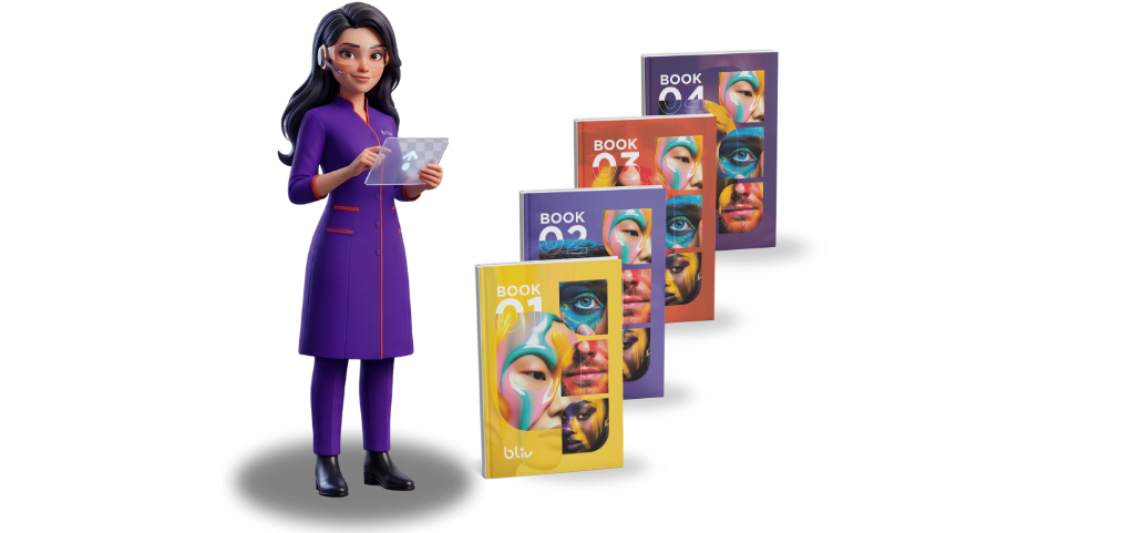 Nossos 4 books base entregam os fundamentos da língua inglesa, entregando autonomia aos alunos para explorar a conversação